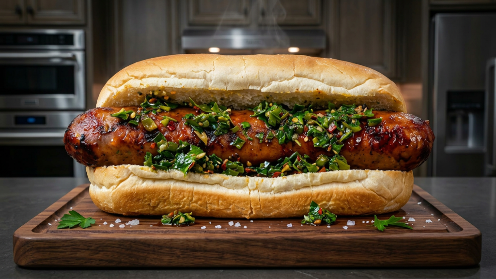 Argentinian chorizo is a fresh, uncured pork (or beef/pork mix) sausage seasoned with garlic, paprika, and wine, known for being juicy and flavorful, and is a staple at asados (barbecues) and as street food. It’s most famously served grilled in a sandwich called a choripán, split open and topped with chimichurri sauce. Unlike Spanish chorizo, it’s not cured, and unlike Mexican chorizo, it’s not typically spicy with vinegar and chiles.