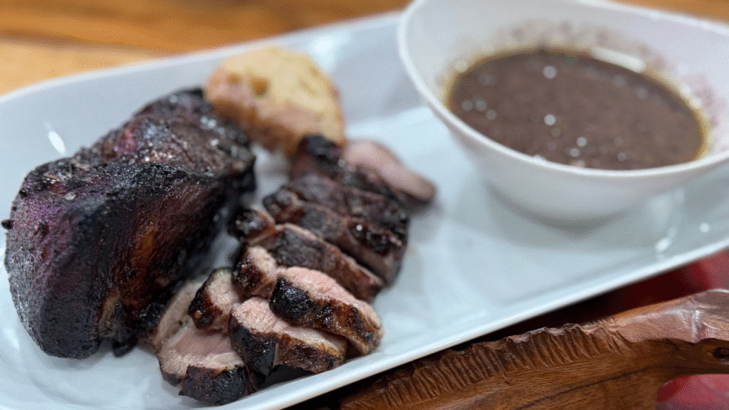 Roughly translated to English: meat of wine with garlic. This traditional Portuguese dish is traditionally served at Christmas in Madeira, an autonomous region of Portugal. It is an archipelago comprising 4 islands off the northwest coast of Africa.