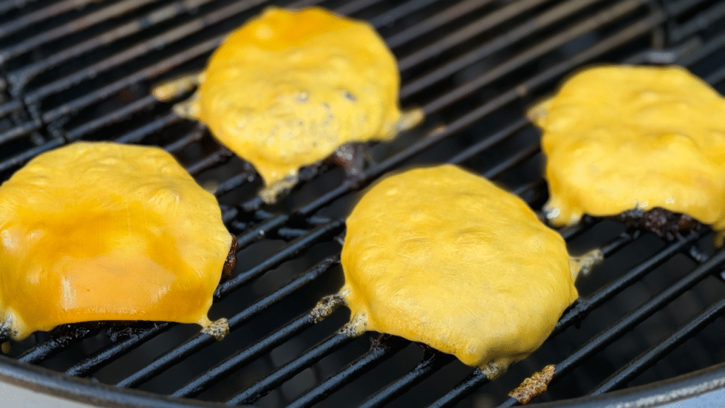 4. For the last 5 minutes of the cook, place you cheese on the patties, allow to melt over the next 5 minutes, then remove the patties from the grill.