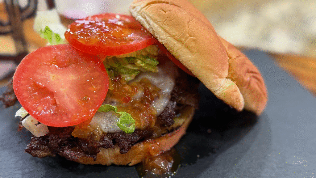 Smashing the ground beef (or other meat) into a hot griddle creates a thin patty with incredible crispy, lacy edges and maximum flavor with it’s deeply caramelized, savory crust through the Maillard reaction.