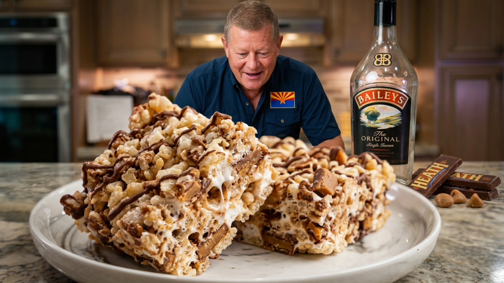 Drunken HEATH English Toffee Rice Crispy Treats. What more needs to be said? We are excited to share a delicious new dessert recipe, perfect for your next holiday party! This easy Baileys Irish Cream creation is a fantastic no bake dessert, making it a simple yet elegant addition to any festive gathering. Get ready to enjoy a sweet treat that’s sure to be a hit among your Christmas desserts recipes.