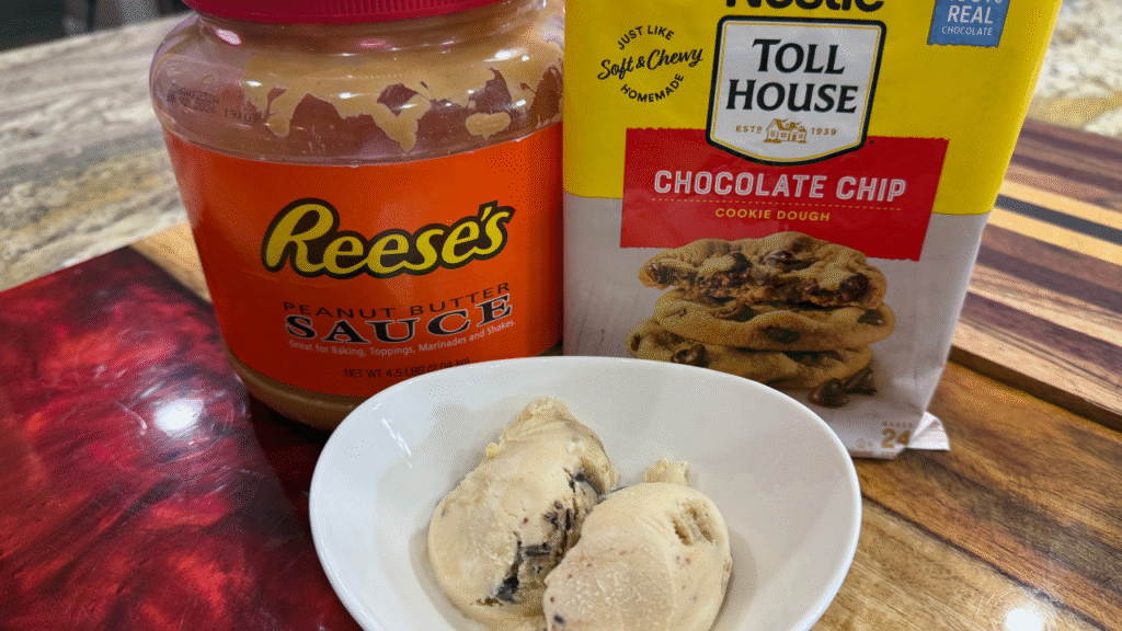 Here is another amazing flavor to try in your Ninja® CREAMi™! If you are a frequent viewer of the Galley of the Sun, you know that I purchased a 4.5 lbs tub of Reese’s Peanut Butter Sauce at the Hershey’s store in Las Vegas. This is another excellent use of that incredible peanut goodness!